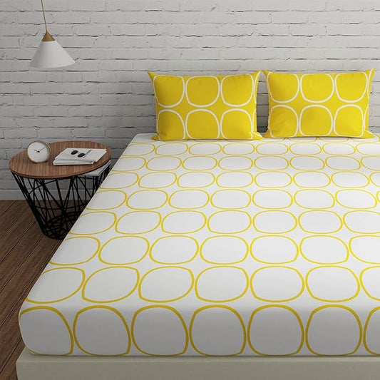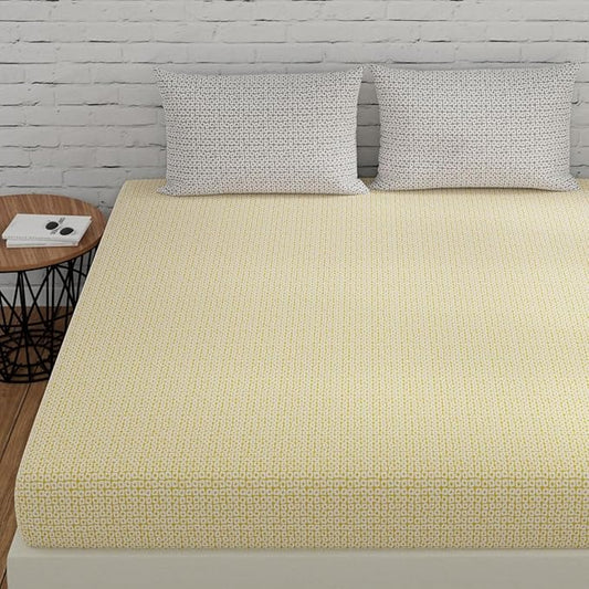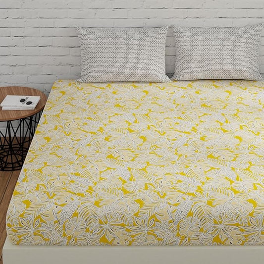 Huesland by Ahmedabad Cotton 144 Tc King Size Bedsheet Cotton with 2 Pillow Covers | Yellow