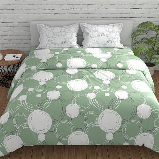 Huesland by Ahmedabad Cotton 144 TC King Size Bedsheet Cotton with 2 Pillow Covers | Sphere | Green & Off White