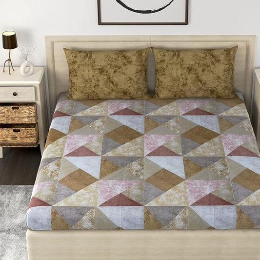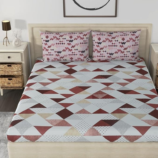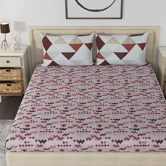 Huesland by Ahmedabad Cotton 186 TC Bedsheet for King Size Bed with 2 Pillow Covers | Brown, Brick & White