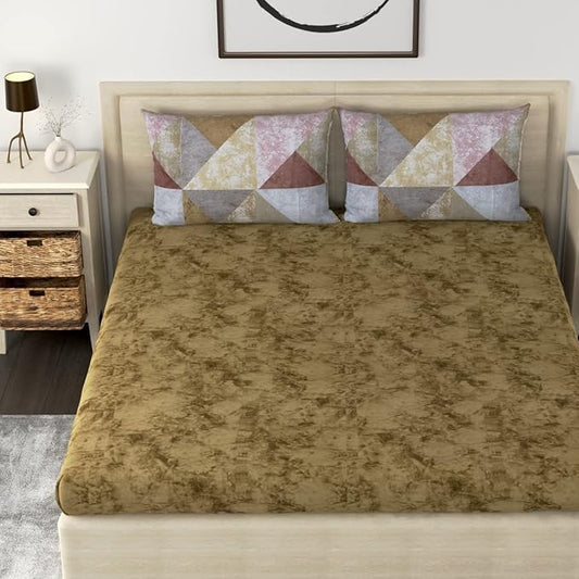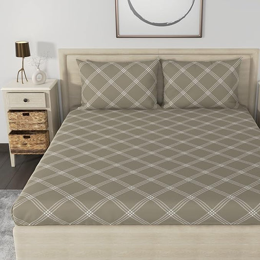 Huesland by Ahmedabad Cotton 186 TC Cotton Bedsheet for Double Bed King Size with 2 Pillow Covers | 9ft x 9ft | Brandon Beige