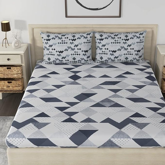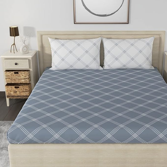 Huesland by Ahmedabad Cotton 186 TC Bedsheet for King Size Bed with 2 Pillow Covers | Grey & White