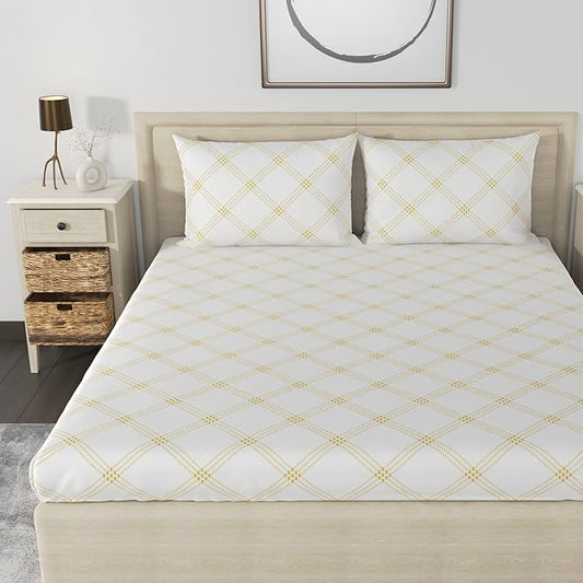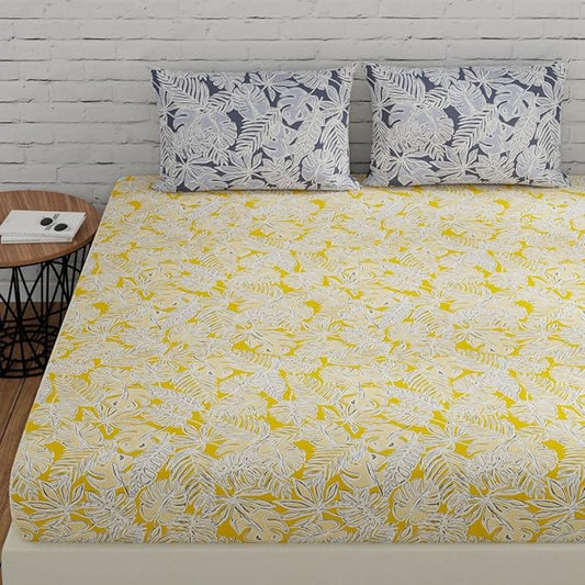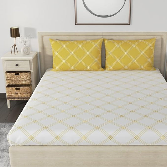 Huesland by Ahmedabad Cotton 186 Tc Bedsheet for King Size Bed With 2 Pillow Covers | White & Yellow