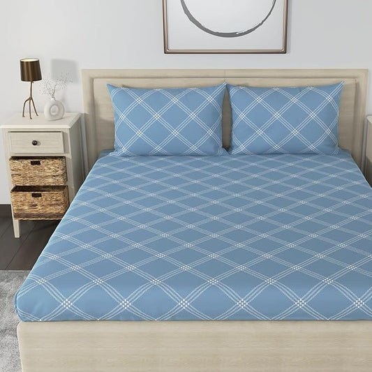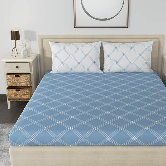 Huesland by Ahmedabad Cotton 186 TC Cotton Bedsheets for King Size Bed with 2 Pillow Covers | Blue & White