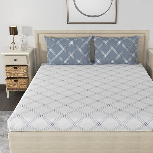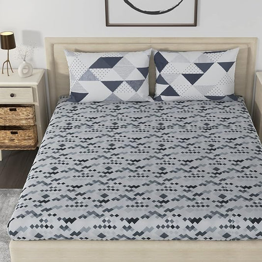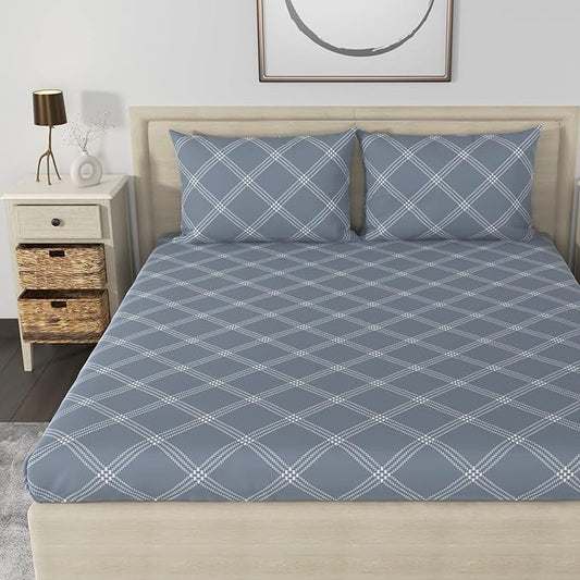 Huesland by Ahmedabad Cotton 186 TC King Size Bedsheet Cotton with 2 Pillow Covers | Grey & White