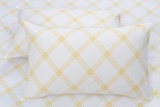 Huesland by Ahmedabad Cotton 186 TC Cotton Pillow Covers Set of 2 | White (Yellow Pattern)