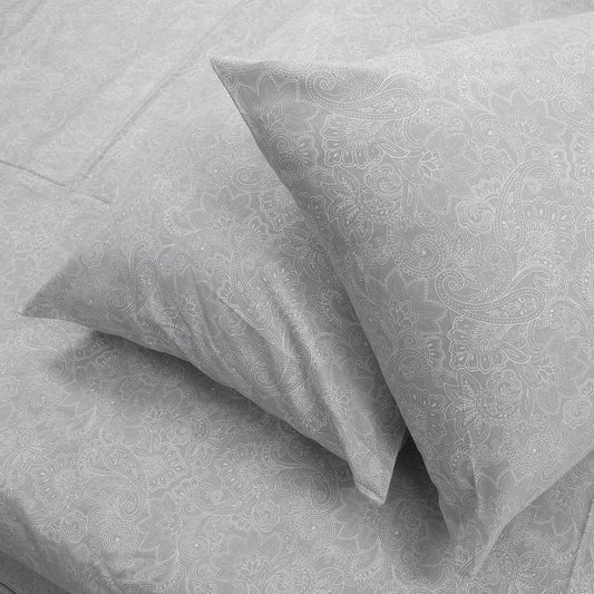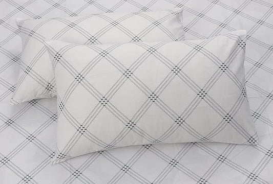 Huesland by Ahmedabad Cotton 186 TC Cotton Pillow Cover Set of 2 | White | Grey Pattern