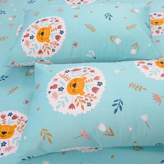 Huesland by Ahmedabad Cotton 186 TC Kids Cotton Pillow Cover Set of 2 | Mint Green & White