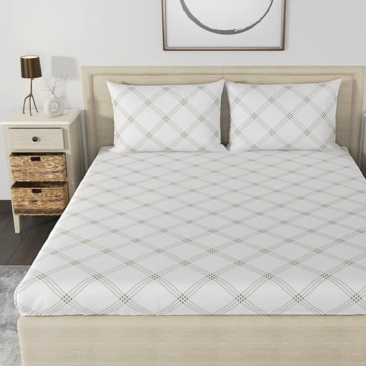 Huesland by Ahmedabad Cotton 186 TC King Size Bedsheet Cotton with 2 Pillow Covers | White & Grey
