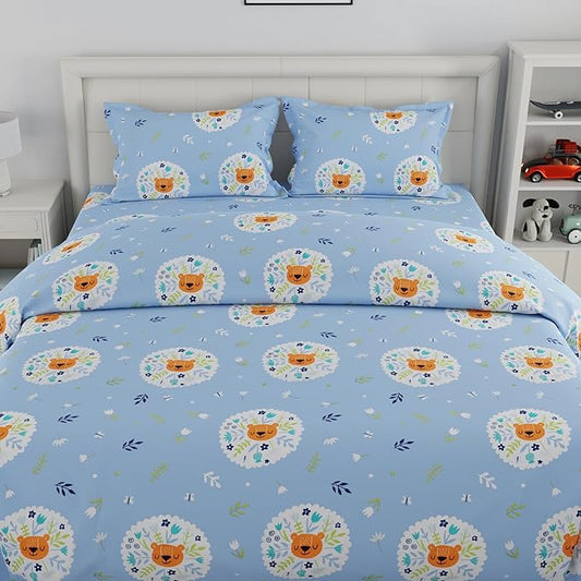 Huesland by Ahmedabad Cotton 186 TC Kids Bedsheet King Size Cotton with 2 Pillow Covers | Powder Blue & White