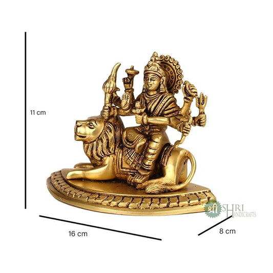 Indicast Brass Maa Durga Idol Sitting on Lion Maa Sherwali Murti for Home Mandir Office Navratra Puja | Height 13 Cms