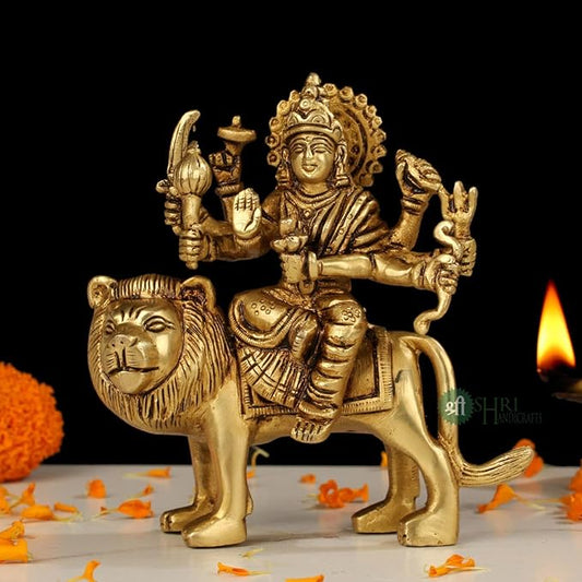 Indicast Brass Maa Durga Statue Idol of Sherawali Mata Murti | Golden Color