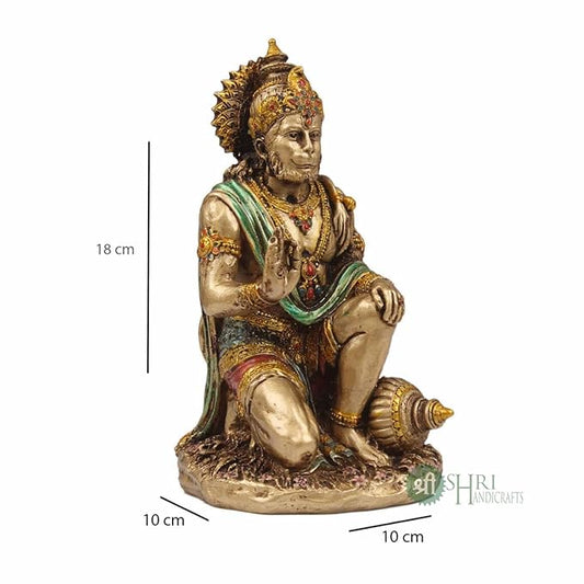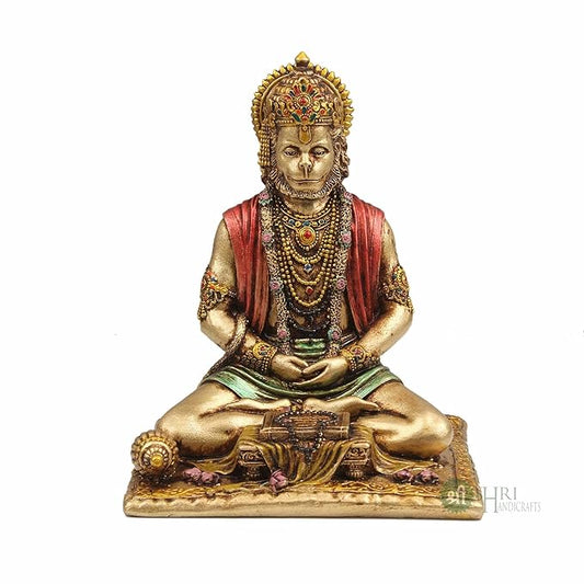 Indicast 7" Inch Hanuman Statue Sitting Metal Finish Idol Decorative Showpiece Handcrafted Hanuman Ji Murti