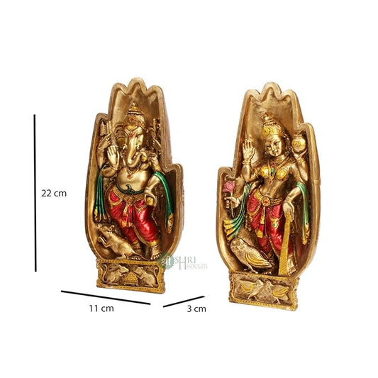Indicast 7" Inch Cold Cast Resin Laxmi and Ganesh Showpiece Antique Home Decor and Gifting