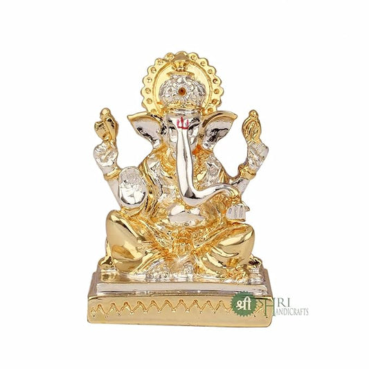 Indicast Gold & Silver Plated Ganesha Idol Murti for Car Dashboard Home Decor and Gifts Items