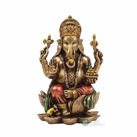 Indicast 7" Inch Cold Cast Resin Ganesh Showpiece Antique Decor | Metal Finish