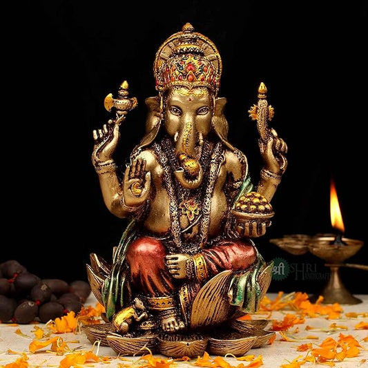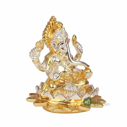 Indicast Gold & Silver Plated Ganesha Idol Murti Sitting on Lotus Kamal Home Decor and Gifts