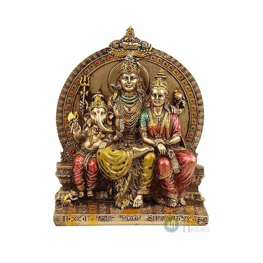 Indicast 8" Inch Cold Cast Resin Shiva With Ganesh & Parwati Showpiece Antique Decor | Metal Finish