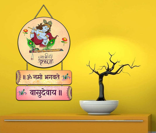 Jai Shri Krishna Decorative Hanging Hindu God Wall Plaque for Home Temple or Living Room