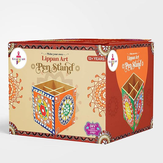 Kalakaram Make Your Own Lippan Art Pen Stand | Pen Stand Canvas for Adults and Kids | Craft Diy Kit for Kids | Traditional Painting Kits