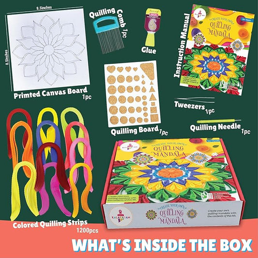 Kalakaram Mandala Quilling Kit Stripes and Tools | Diy Craft Kit for Kids and Adults | With Pre-designed Canvas Board