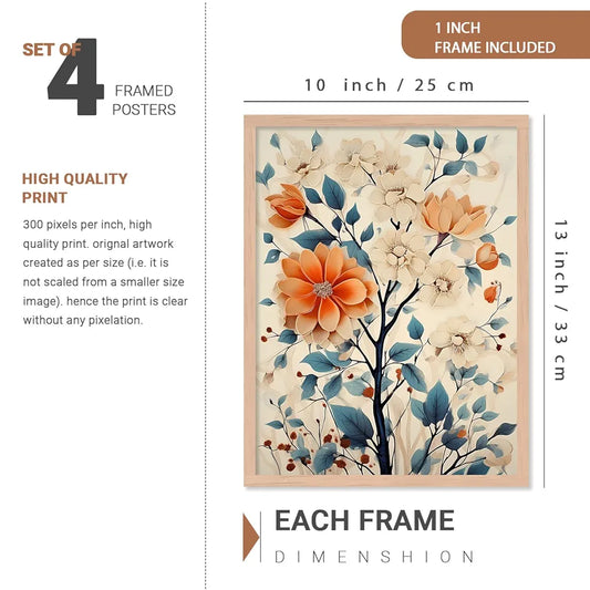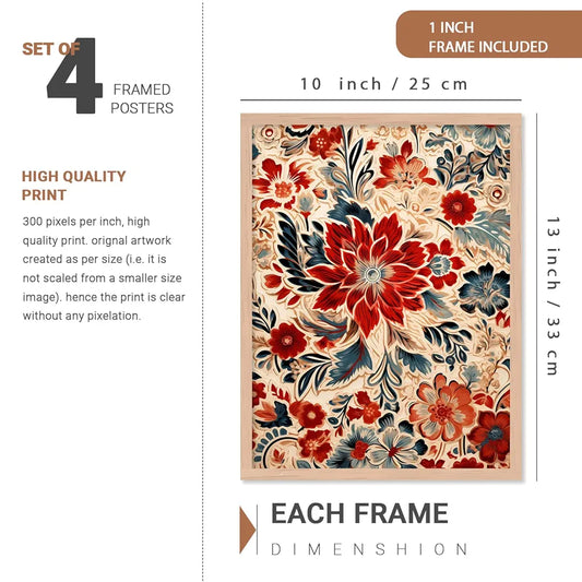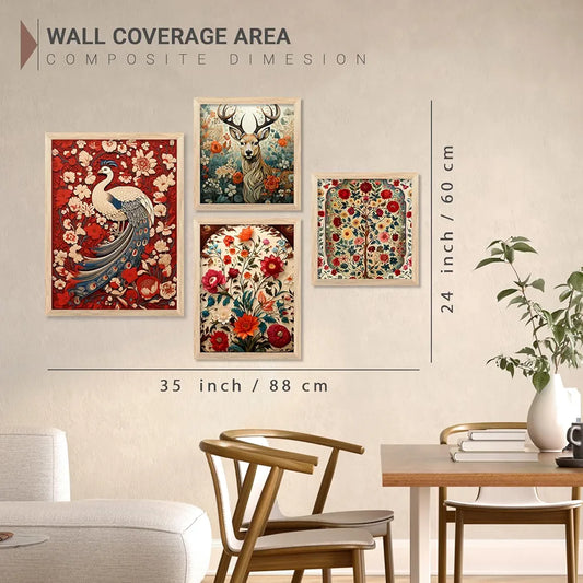 Kotart Madhubani Art Paintings with Frame Traditional Framed Painting Set of 4 Frames E