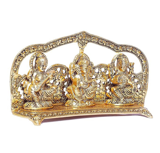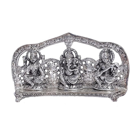 KridayKraft Laxmi Ganesha Saraswati Murti LGS Metal Statue with Diya pooja Idol