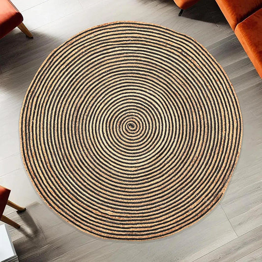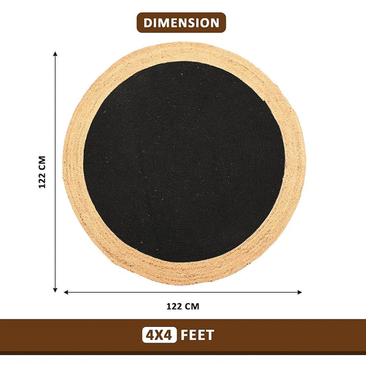 Kuber Industries 4x4 Feet Round Jute Rug & Carpet for Home Bedroom Beige & Black