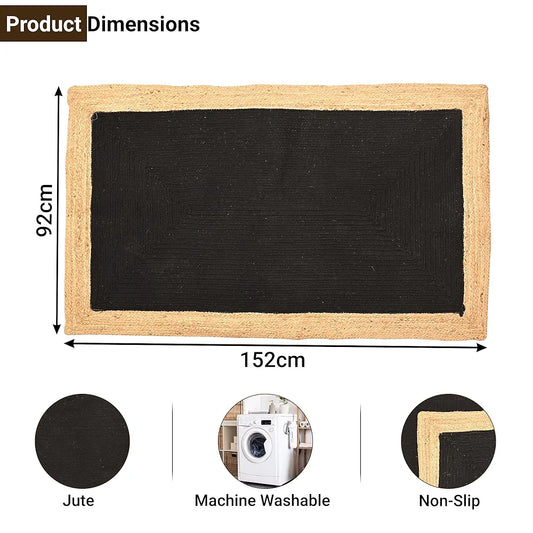 Kuber Industries 3x5 Feet Reversible Carpets for Living Room Machine Washable Border Black & Beige