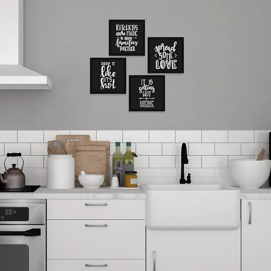 ArtX Kitchen Food Coffee Spices Motivational Funny Quotes Wall Art Painting Framed Set of 4