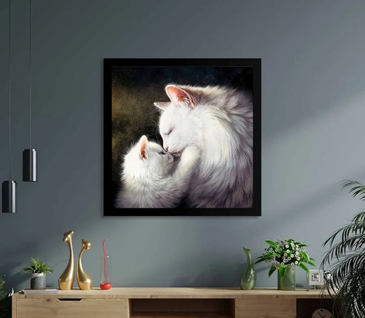 ArtX Mom Cat Family Big Canvas Painting For Bedroom and Living Room With Frame