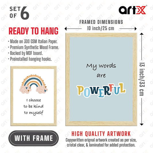 ArtX Motivational -07 Quotes Wall Art A4 Size Multicolor Synthetic Wood Frames Set Of 6