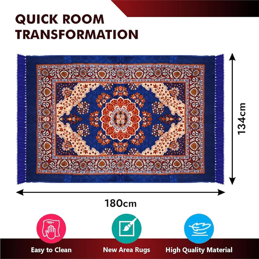 Kuber Industries Carpet Velvet Carpet-Rug for Home Décor Carpet Rug for Bedroom Blue