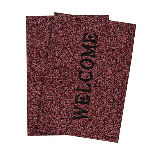 Kuber Industries Anti-Slip Welcome Print Grass Door Mats Red Colour