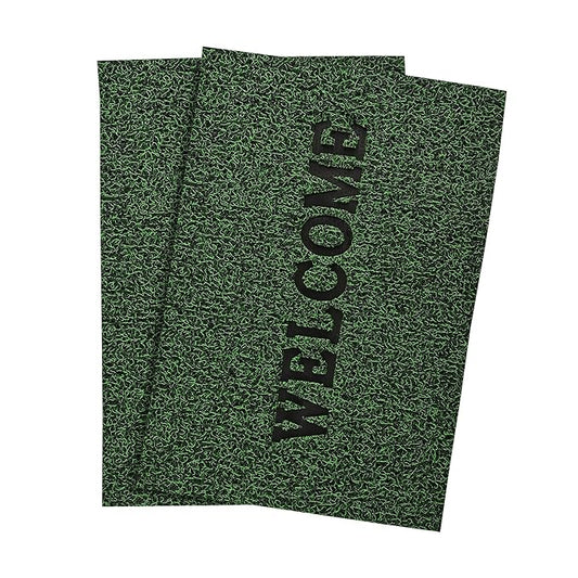Kuber Industries Anti-Slip Welcome Print Grass Door Mats for Home Green