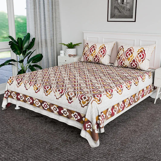 Kuber Industries Cotton Bedsheets for Double Bed with 2 Pillow Covers Rusty Star Flower -Brown