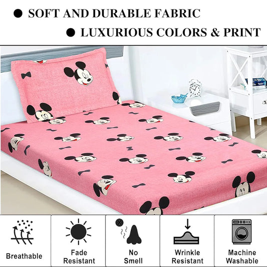 Kuber Industries Cotton Single Bedsheet with 1 Pillow Cover Wrinkle Bedroom Pink