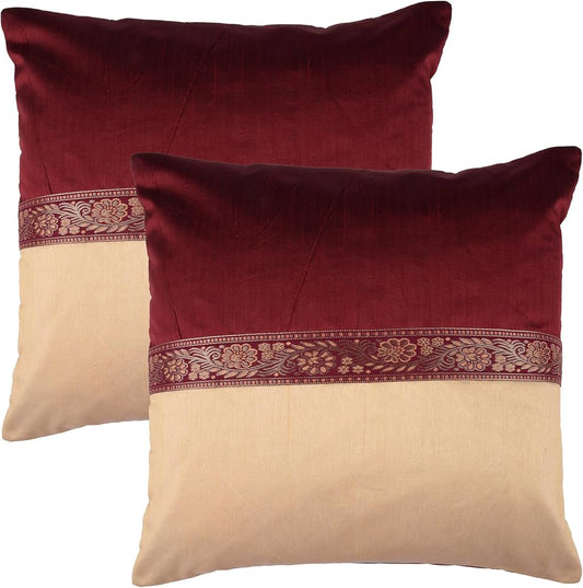 Kuber Industries Cushion Cover Pillow Covers Center Lace Cushion Covers Set of 5 Maroon