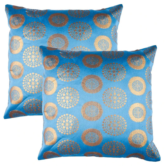 Kuber Industries Cushion Cover Pillow Covers Banarasi Gola Set of 5 Colour Firozi