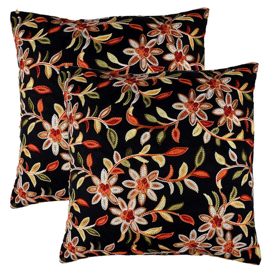 Kuber Industries Cushion Cover Pillow Covers Embroidery Cushion Covers Set of 5 Black