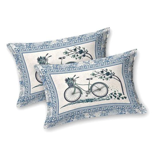 Kuber Industries Double Bedsheet with 2 Pillow Covers 160 TC Premium Cotton Dezier Check Flower Blue
