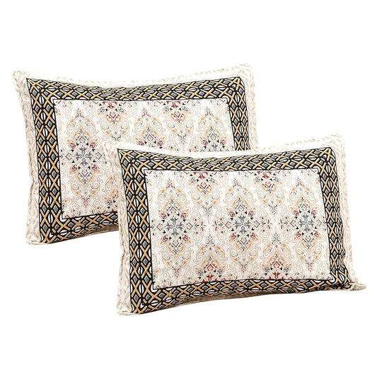 Kuber Industries Double Bedsheet with 2 Pillow Covers 160 TC Premium Cotton Dezier Bell Print Cream