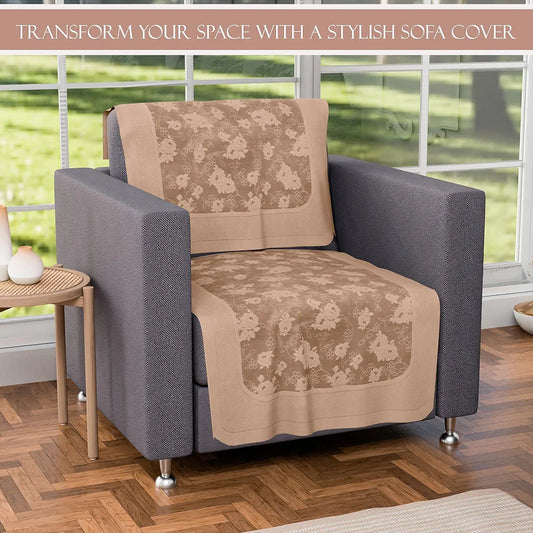 Kuber Industries Set of 10 Net Anti-Skid Sofa Cover 5-Seater Self Net Hawaii Camel Brown
