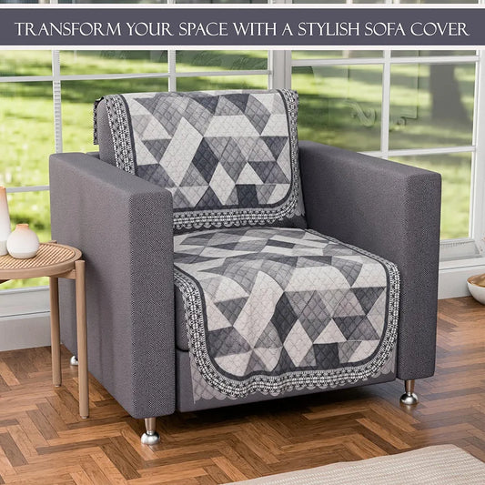 Kuber Industries Set of 10 Anti-Skid Sofa Cover 5-Seater Triangular Ultra Sonic BMW-White Grey