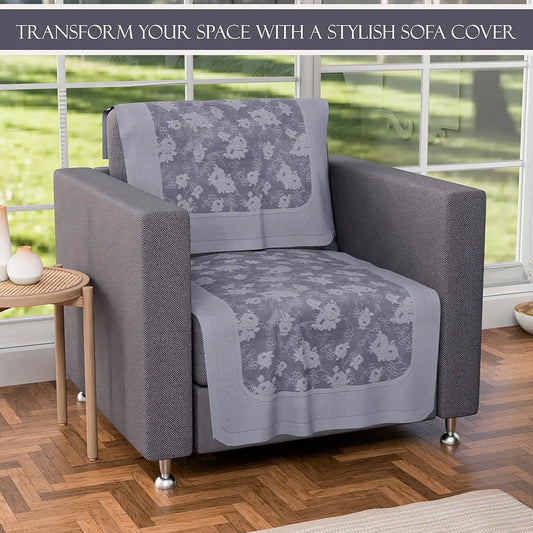 Kuber Industries Set of 10 Net Anti-Skid Sofa Cover 5-Seater Floral Print Black & Grey