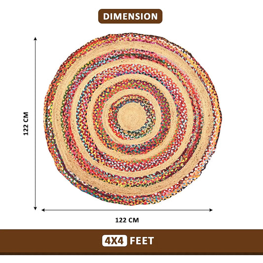 Kuber Industries Satranji Round Jute Rug & Carpet for Home & Bedroom Thick Lines Beige