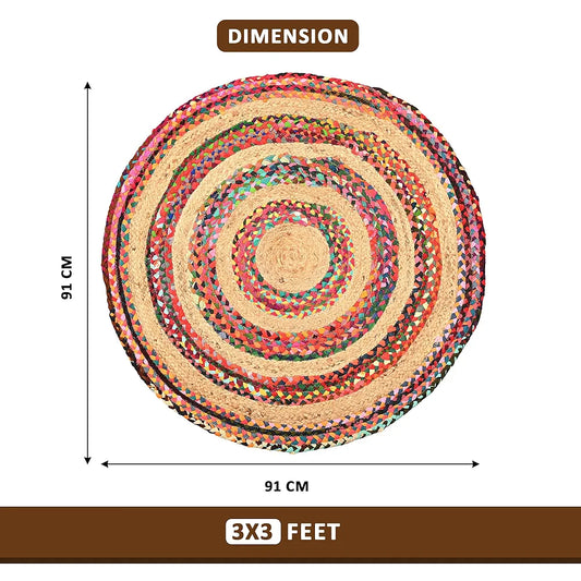 Kuber Industries Satranji Round Jute Rug & Carpet for Home & Bedroom Stripes Pink