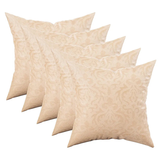 Kuber Industries Set of 5 Washable & Removable Velvet Sofa Pillow Covers with Zip Floral Design Beige
