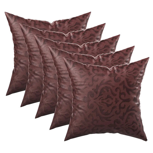 Kuber Industries Set of 5 Washable & Removable Velvet Sofa Pillow Covers with Zip Floral Design Brown
