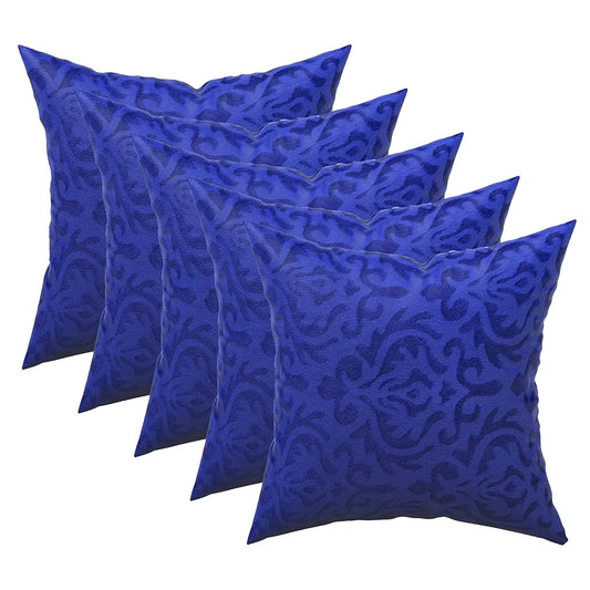 Kuber Industries Set of 5 Washable & Removable Velvet Sofa Pillow Covers with Zip Floral Design Royal Blue