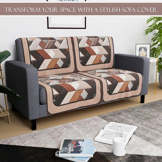 Kuber Industries Set of 4 Durable 2 Seater Sofa Cover Triangle Print White & Brown